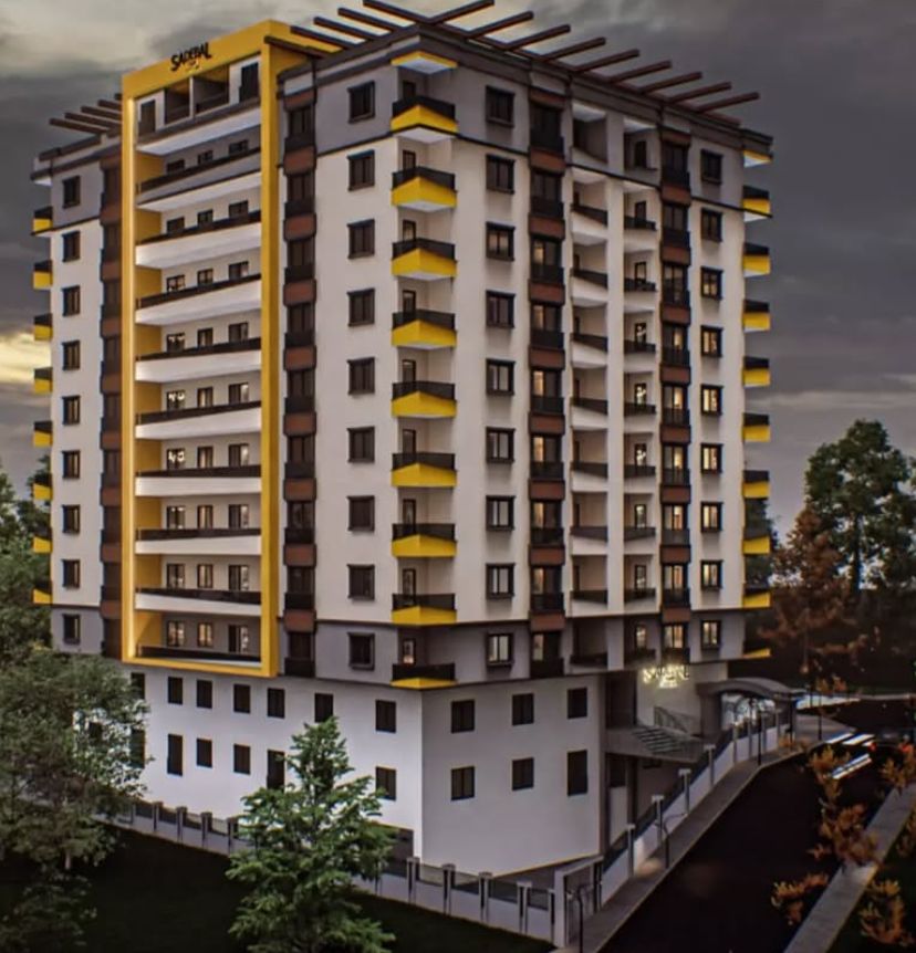 Antrasit gri, beyaz ve hardal sarısı kullanımı, binaya yüksek bir görsel enerji katmış. Özellikle sarı çerçeveler, cephede dikey bir süreklilik sağlayarak yapının boyunu daha ihtişamlı gösteriyor. * Balkon Tasarımları: Hareketli balkon yapısı, cepheye derinlik kazandırarak monotonluğu kırmış. En üst kattaki teras detayı ve geniş cam yüzeyler, projenin "Premium" segmentine hitap ettiğini hissettiriyor. * Zemin Kat:
